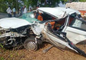खड़ी ट्रक में घुसी कार, 2 की मौत, 4 गंभीर रायपुर रेफर