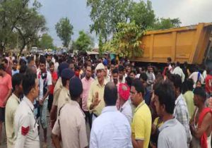बाइक सवार को ट्रेलर ने कुचला, चक्काजाम कर भीड़ ने वाहन में की तोड़फोड़, पुलिस से झूमाझटकी