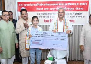 मुख्यमंत्री ने श्रमिक परिवार के 10 मेधावी छात्रों को एक-एक लाख का चेक किया प्रदान