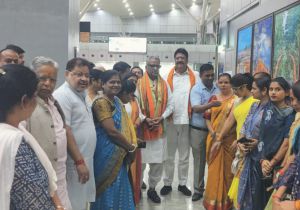 भाजपा प्रभारी ओम माथुर का विमानतल पर स्वागत