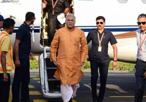 मुख्यमंत्री भूपेश बघेल रायगढ़ के जिंदल एयर स्ट्रिप पहुंचे