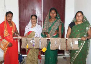 समूह की महिलाएं ककुन से निकाल रही रेशम धागा