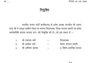 24 May, 2023 10:31 AM IST | SAMWADINDIA.INरायपुर पार्टी के अंदर चल रही अंतर कलह पर विराम लगाते हुए ग्रामीण जिला भाजपा अध्यक्ष...