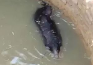 कुएं में गिरा भालू वन विभाग की रेसक्यू टीम ने निकाला बाहर