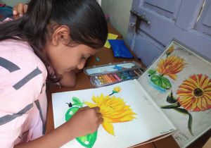 चित्रकला प्रशिक्षण शिविर में बच्चे सीख रहे चित्रकला की बारीकियाँ