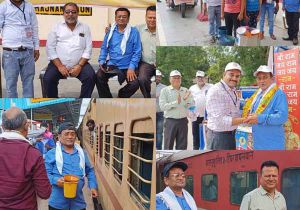 सत्यनारायण मंदिर समिति के सदस्यों ने रेल्वे स्टेशन में यात्रियों को पिलाया शीतल जल