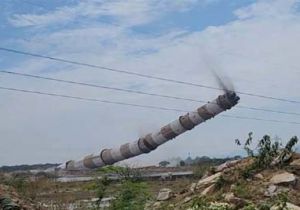 पावर प्लांट की 250 मीटर ऊंची चिमनी को किया गया धराशाई
