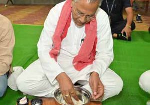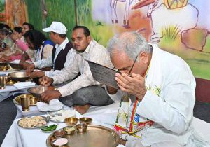 गृहमंत्री साहू ने बोरबासी खाकर किया श्रमिकों का सम्मान
