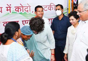 प्रियंका गांधी ने अबूझमाड़ की मानमती पोटाई को लगाया गले से