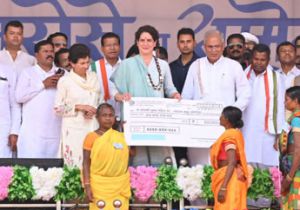 बस्तर में भरोसे का सम्मेलन : मुख्यमंत्री बघेल व प्रियंका गांधी ने हितग्राहियों को किया सामग्री वितरण