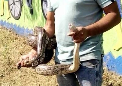 कोरबा में आठ फीट लंबे अजगर को स्नेक कैचर ने पकड़ा