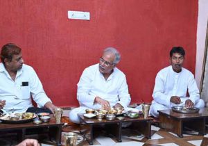 मुख्यमंत्री ने सोनकर परिवार के घर में स्वादिष्ट और छत्तीसगढ़िया भोजन का चखा स्वाद