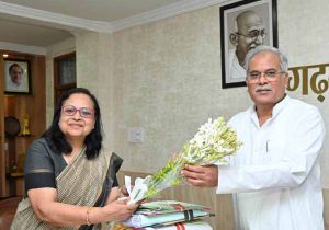 मुख्यमंत्री से हेमचंद यादव विश्वविद्यालय की कुलपति ने की सौजन्य मुलाकात