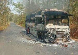 यात्री बस को माओवादियों ने आग के हवाले कर दिया