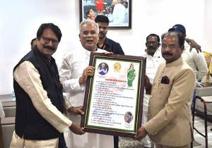 मुख्यमंत्री को छत्तीसगढ़ संस्कृत विद्यालयमंडलम के अध्यक्ष ने स्वरचित माता छत्तीसगढ़ वंदना की प्रति भेंट की