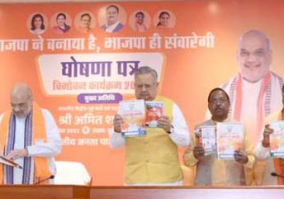 3 Nov, 2023 03:45 PM IST | SAMWADINDIA.INरायपुर छत्तीसगढ़ में बीजेपी ने विधानसभा चुनावों के लिए अपना घोषणापत्र जारी किया. घोषणा पत्र समिति...