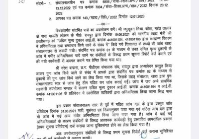 23 Oct, 2023 11:34 AM IST | SAMWADINDIA.INरायपुर राजधानी में दो राशन दुकान 441001104 और 441001106 जय अम्बे प्राथमिक सहकारी उपभोक्ता भंडार द्वारा...