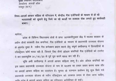 23 Oct, 2023 12:34 PM IST | SAMWADINDIA.INरायपुर रायपुर जिला कलेक्टर एवं जिला निर्वाचन अधिकारी डॉक्टर सर्वेश्वर नरेन्द्र भूरे के आदेशानुसार एवं रायपुर...