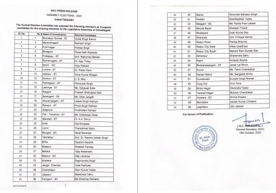 कांग्रेस की 2nd लिस्ट के 53 प्रत्याशियों में से 9 महिलाएं रायपुर