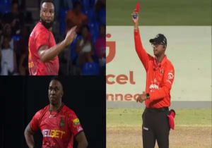 क्रिकेट के मैदान पर पहली बार हुआ रेड कार्ड का इस्तेमाल, 10 खिलाड़ियों के साथ खेली कीरोन पोलार्ड की टीम