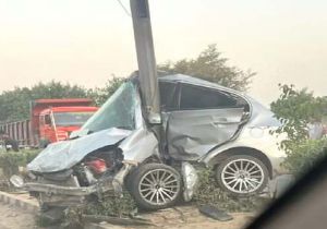 बिजली के खंभे से टकराई तेज रफ्तार होंडा अमेज के उड़े परखच्चे, नाबालिग कार चालक की मौत