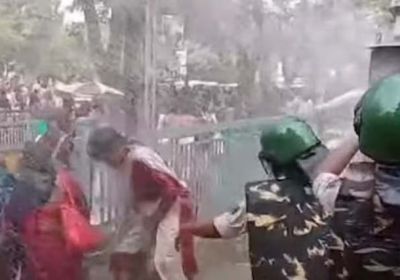 आरजेडी ऑफिस के बाहर आंगनबाड़ी सेविकाओं का प्रदर्शन, वाटर कैनन का भी इस्तेमाल