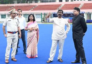 हेमन्त सोरेन ने मोरहाबादी स्थित मरांग गोमके जयपाल सिंह मुंडा एस्ट्रोटर्फ स्टेडियम का निरीक्षण किया