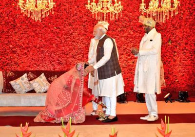 शादी समारोह में पहुंचे प्रधानमंत्री नरेंद्र मोदी, दूल्हा-दुल्हन ने पैर छूकर पीएम मोदी का आशीर्वाद लिया