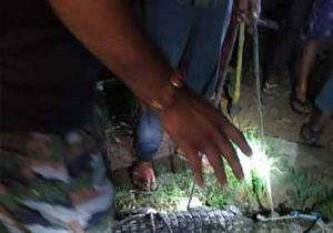 मोहनगढ़ में मिला मगरमच्छ पुलिस एवं वन विभाग की संयुक्त टीम ने किया रेस्क्यू