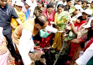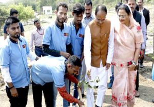 मुख्यमंत्री चौहान ने अपने जन्म-दिवस पर परिजन सुरक्षा कर्मियों और हाऊसकीपिंग स्टाफ के साथ पौध-रोपण किया