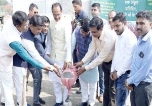 मुख्यमंत्री चौहान के साथ लोणारी कुनबी समाज के प्रतिनिधियों ने पौध-रोपण किया