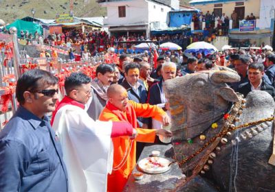 केदार पुरी में योगी का भव्य स्वागत, बाबा केदार का किया रूद्राभिषेक