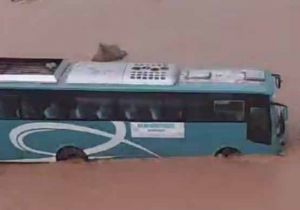 हरिद्वार-बिजनौर बॉर्डर पर नदी में फंसी मैत्री बस, 53 यात्री थे सवार