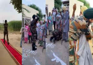 दरवाजे पर बिछाई रेड कार्पेट, दादा ने बरसाए फूल; दिल खुश कर देगा सिख फौजी का ऐसा स्वागत