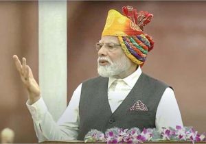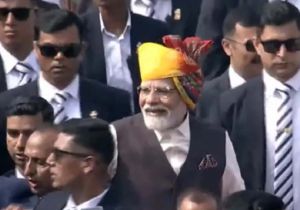 लाल किले पर खास अंदाज में नजर आए पीएम मोदी, इस बार पहना बहुरंगी साफा