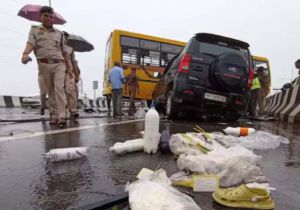 मेरठ से खाटू श्याम जा रहा था परिवार, गाजियाबाद में स्कूल बस ने कार में मार दी टक्कर; 6 की मौत