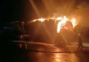 हावेरी जिले में दो ट्रकों के बीच हुई जोरदार टक्कर, गाड़ियों में लगी आग