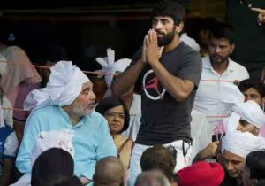 बजरंग दल के समर्थन में आए धरने पर बैठे पहलवान पूनिया, विरोध के बाद हटाया पोस्ट