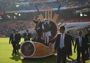 मैच से पहले स्टेडियम में PM नरेंद्र मोदी: रथ से लिया जायजा और कप्तान रोहित शर्मा को दी स्पेशल कैप