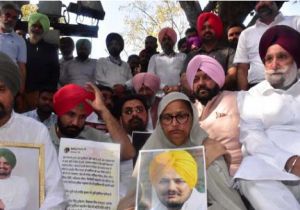 गायक सिद्धू मूसेवाला के माता-पिता ने पंजाब विधानसभा परिसर के बाहर दिया धरना