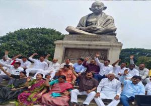 कर्नाटक कांग्रेस ने भी किया मौन सत्याग्रह, सीएम भी रहे मौजूद