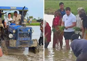 सुबह-सुबह सोनीपत पहुंचे राहुल गांधी; पहले खेत जोते, फिर किसानों के साथ की धान की रोपाई