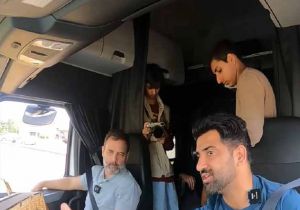 राहुल ने अमेरिका में की ट्रक की सवारी