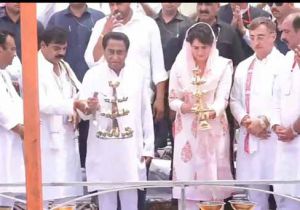 कांग्रेस का सॉफ्ट हिंदुत्व प्लान, प्रियंका गांधी के स्वागत में लगी 30 फीट की गदा