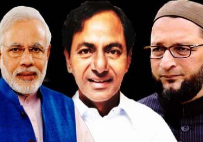 हैदराबाद में मोदी की चुनावी रैली से पहले कांग्रेस पार्टी ने औवेसी को मोदी के हाथों की कठपुतली के रूप में दिखाया
