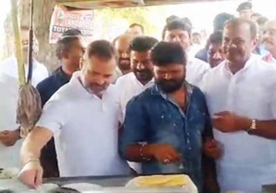 राहुल गांधी ने तेलंगाना में सड़क किनारे एक भोजनालय में बनाया डोसा, बच्चों को बांटी चॉकलेट