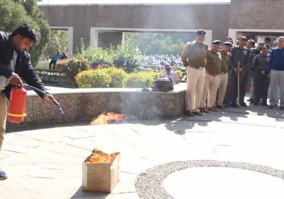 विद्युत कंपनियों के मुख्यालय शक्तिभवन में हुआ अग्निशमन प्रशिक्षण और मॉकड्रिल