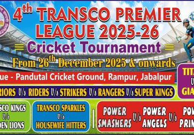 25 Dec, 2025 05:12 PM IST | SAMWADINDIA.INट्रांसको प्रीमियर क्रिकेट लीग 26 दिसम्बर से जबलपुर एम.पी. ट्रांसको (मध्यप्रदेश पावर ट्रांसमिशन कंपनी) मुख्यालय, जबलपुर में...