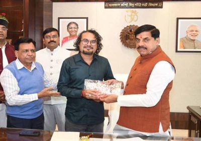 मुख्यमंत्री डॉ. यादव को नीमच के राहुल लोहार ने कीं दुर्लभ कलाकृतियां भेंट