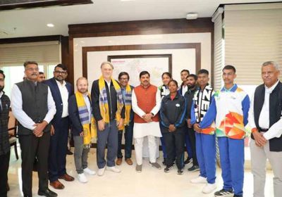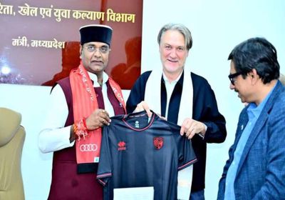 मंत्री विश्वास सारंग ने की जर्मन फुटबॉल कोच डाइटमार बीयर्सडॉर्फ से भेंट
